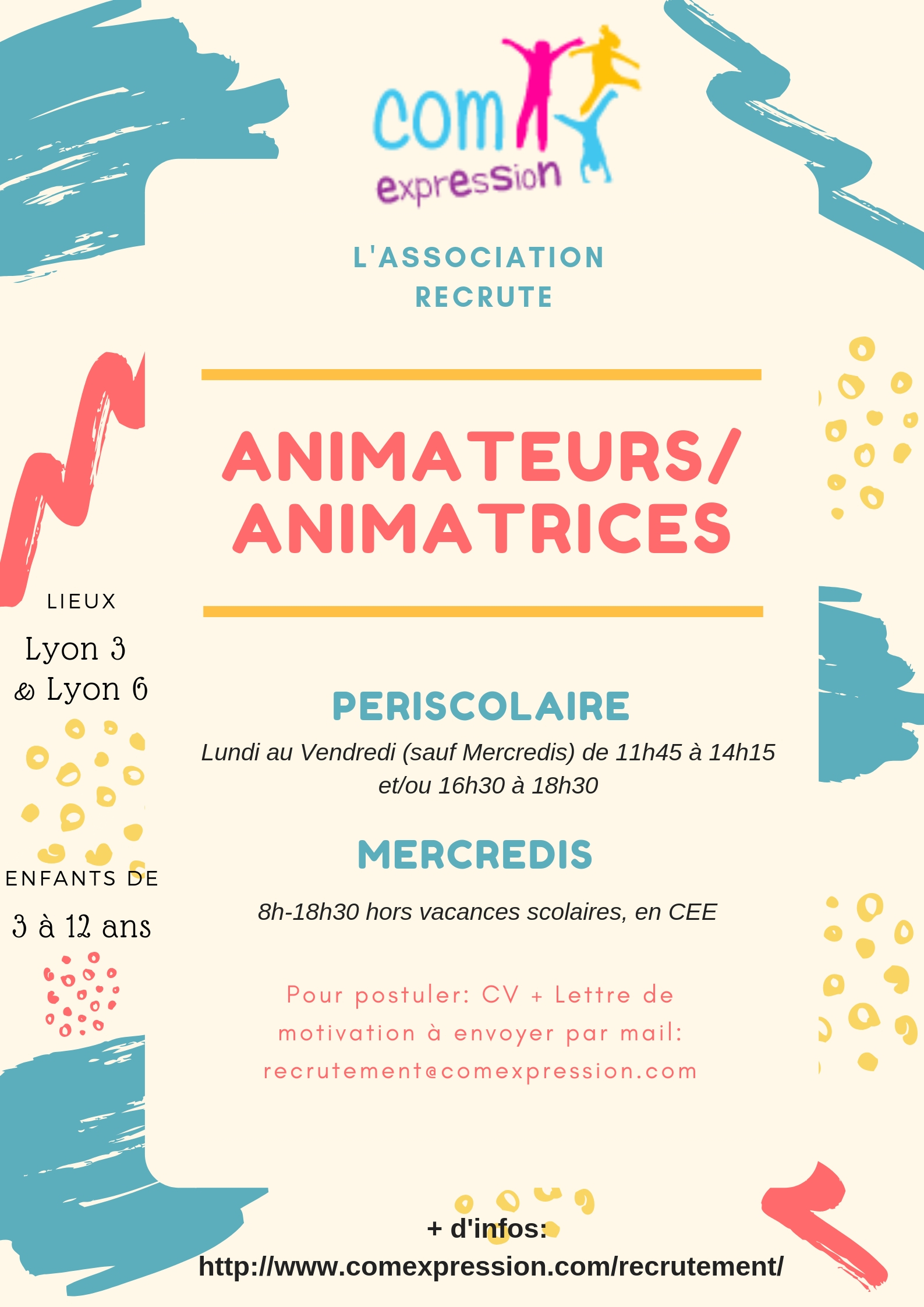 Mail dédiée aux envois de candidatures d’animateurs-trices : recrutement@comexpression.com